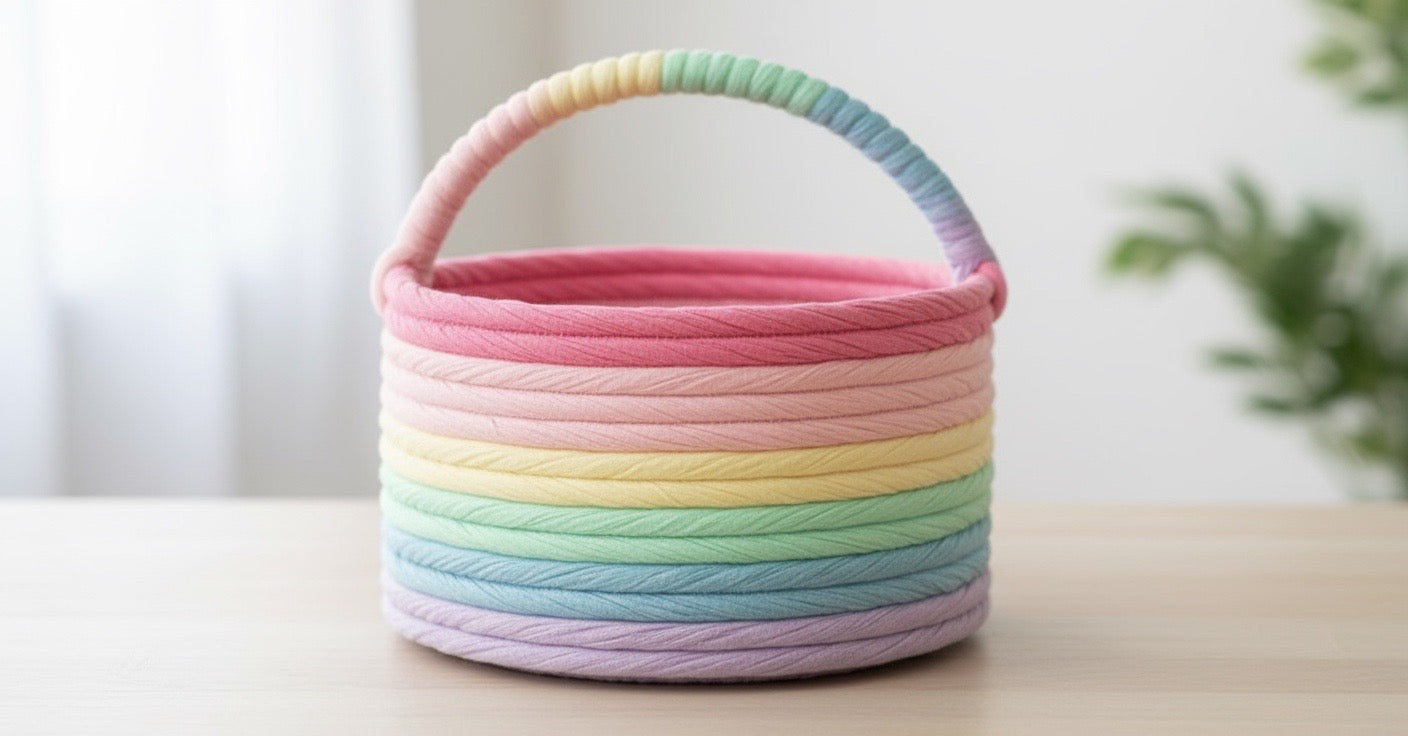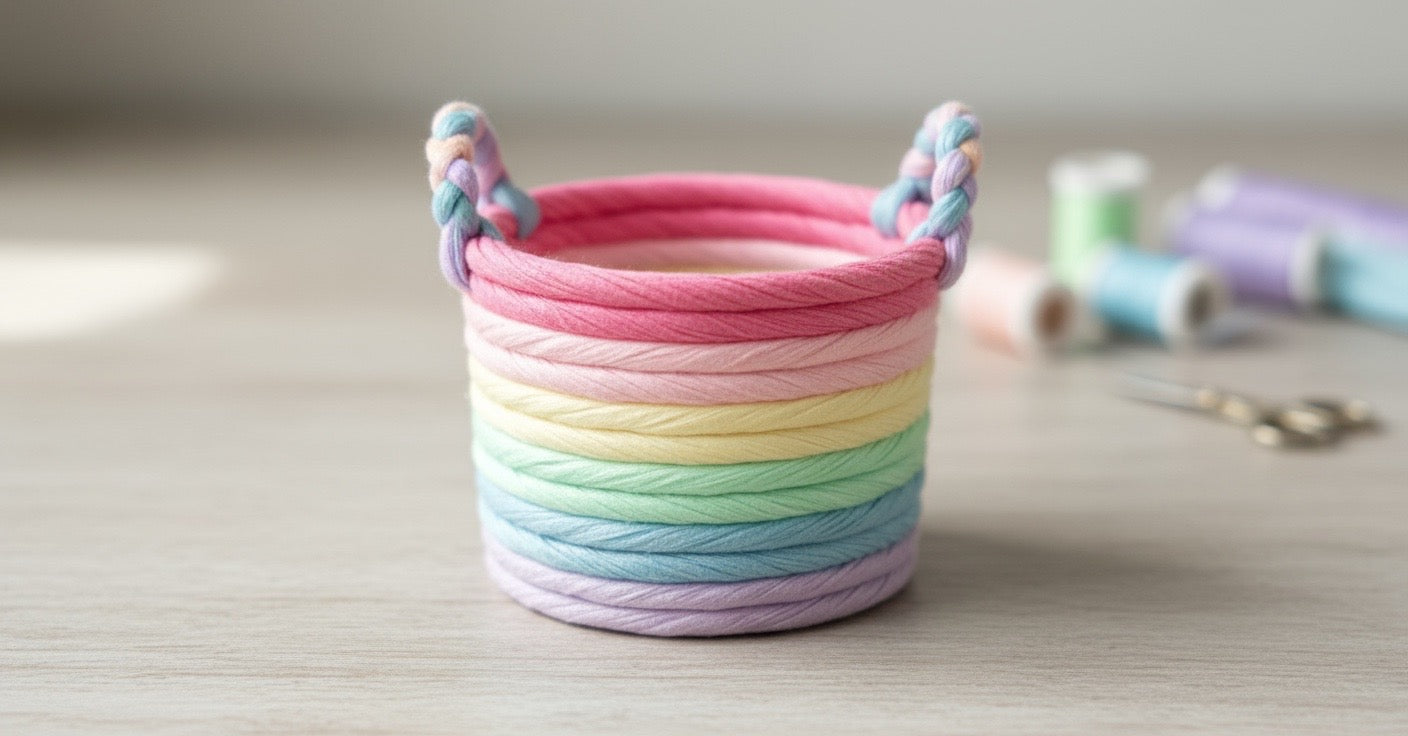 Craftband with six different colors threads. Light purple, sky blue, pastel green, pastel yellow, pink and dark pink. Craftband is about 1.5cm.
